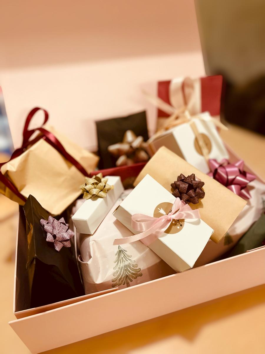De Fragrantly Christmas Mystery Box bevat 12 full size handgemaakte producten, prachtig verpakt in feestelijke doosjes en zakjes.